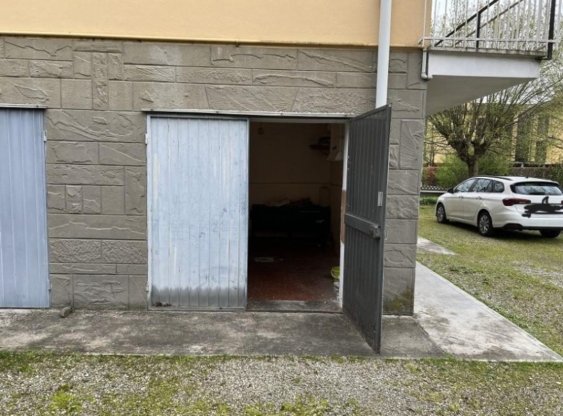 Appartamento all’asta composto da ampio ingresso/disimpegno, tinello e cucinotto, soggiorno con balcone e camino a legna, due camere di cui una con balcone, e un bagno. Completano la proprietà cantina ed autorimessa al piano terreno.