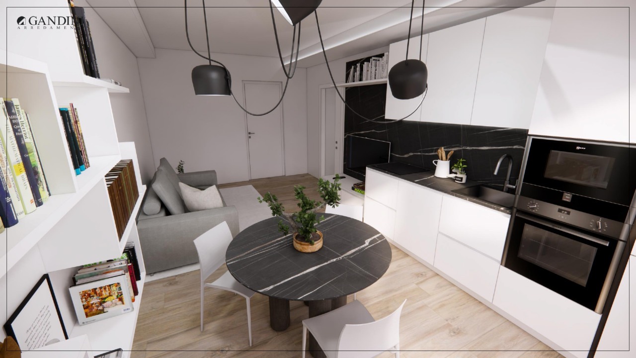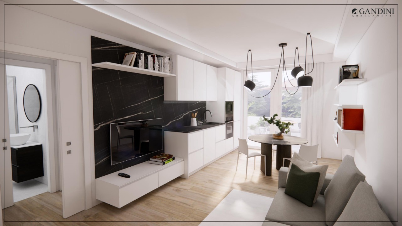 L’appartamento si compone di un’accogliente zona giorno con cucina a vista, camera da letto spaziosa che garantisce il massimo comfort, e bagno finemente rifinito. Ogni ambiente è stato studiato per massimizzare la funzionalità senza sacrificare lo stile, le ampie finestre contribuiscono a creare un’atmosfera luminosa ed elegante.