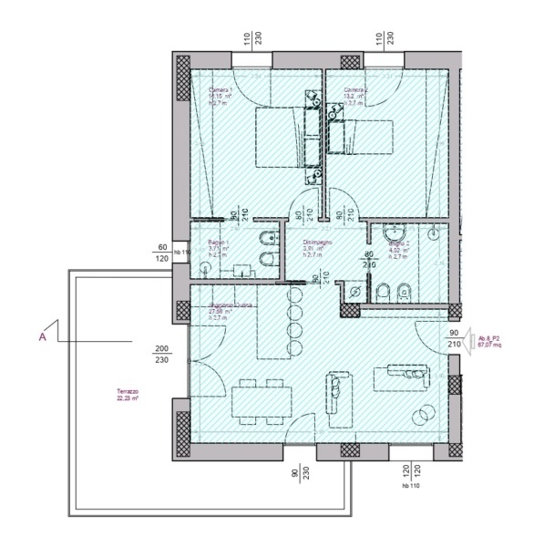 L’appartamento si compone di un’accogliente zona giorno con cucina a vista, due camere da letto spaziose che garantiscono il massimo comfort, due bagni finemente rifiniti. Ogni ambiente è stato studiato per massimizzare la funzionalità senza sacrificare lo stile, le ampie finestre contribuiscono a creare un’atmosfera luminosa ed elegante.