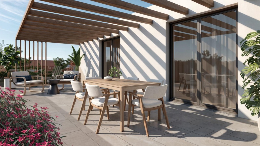 I dettagli distintivi includono pavimenti in gres porcellanato che aggiungono calore agli spazi interni e impianti moderni che assicurano efficienza energetica e massimo comfort.