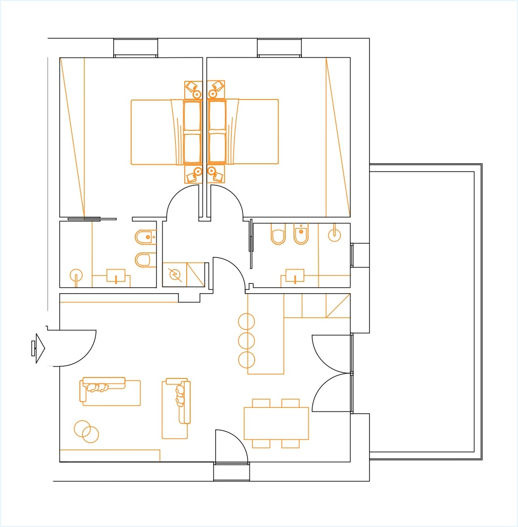 L’appartamento si compone di un’accogliente zona giorno con cucina a vista, due camere da letto spaziose che garantiscono il massimo comfort, due bagni finemente rifiniti. Ogni ambiente è stato studiato per massimizzare la funzionalità senza sacrificare lo stile, le ampie finestre contribuiscono a creare un’atmosfera luminosa ed elegante.