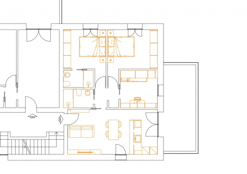 L’appartamento si compone di un’accogliente zona giorno con cucina a vista, due camere da letto spaziose che garantiscono il massimo comfort, due bagni finemente rifiniti. Ogni ambiente è stato studiato per massimizzare la funzionalità senza sacrificare lo stile, le ampie finestre contribuiscono a creare un’atmosfera luminosa ed elegante.