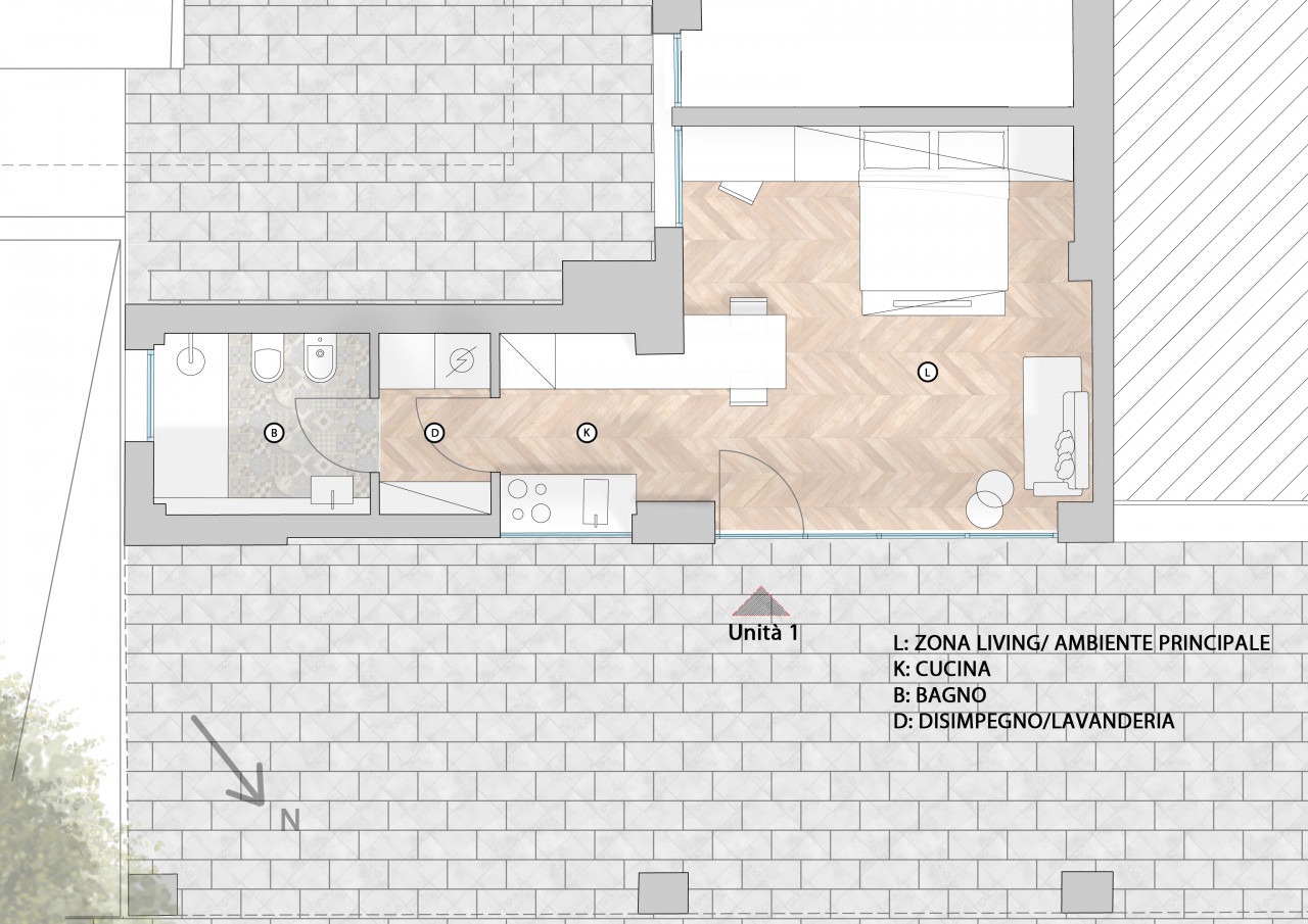 Ci saranno Monolocali con ingressi indipendenti, facilmente divisibili e dotati di ampi volumi. Tutti gli alloggi sono protetti dal riservato portico che affaccia sul parco alberato condominiale.