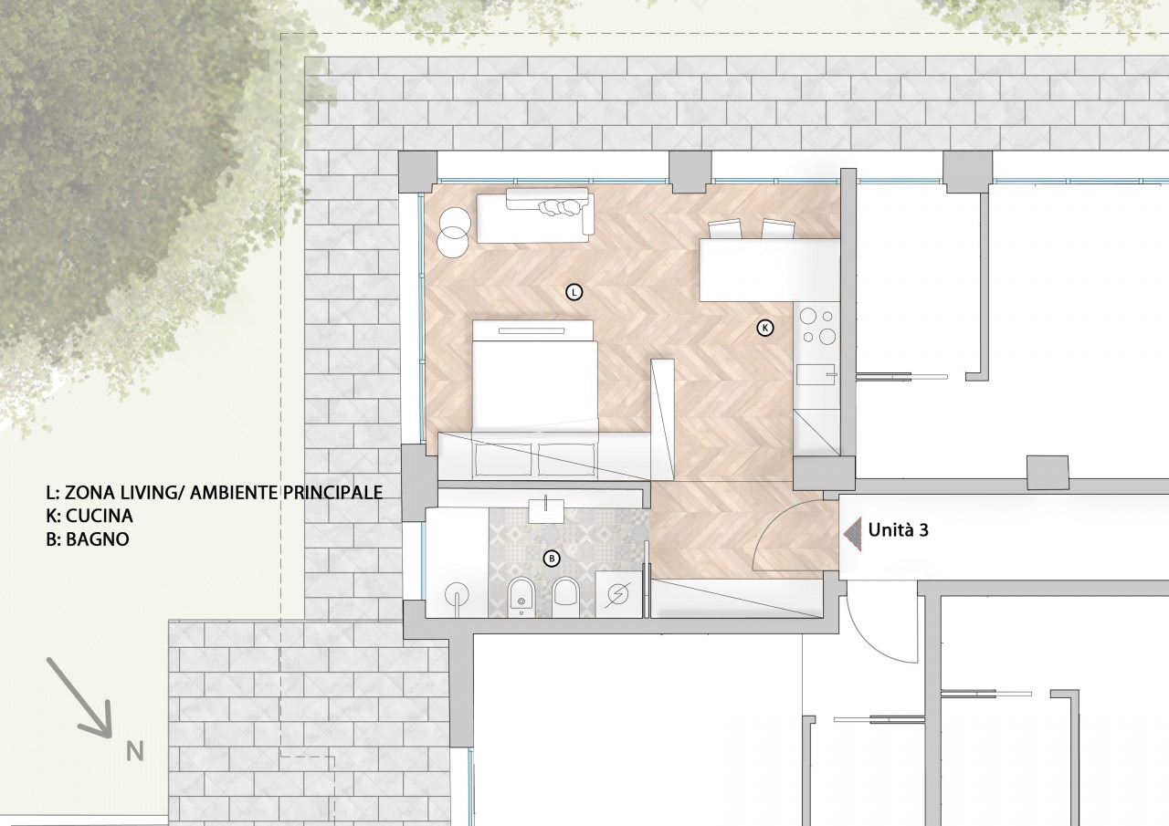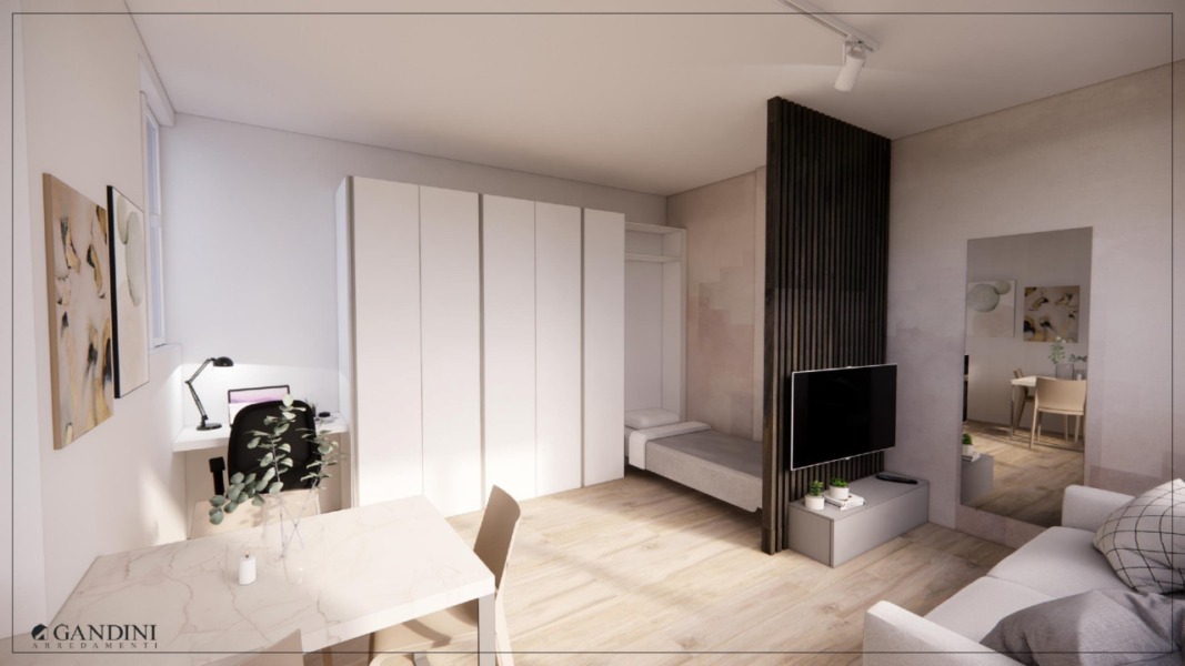 Ci saranno Monolocali con ingressi indipendenti, facilmente divisibili e dotati di ampi volumi. Tutti gli alloggi sono protetti dal riservato portico che affaccia sul parco alberato condominiale.