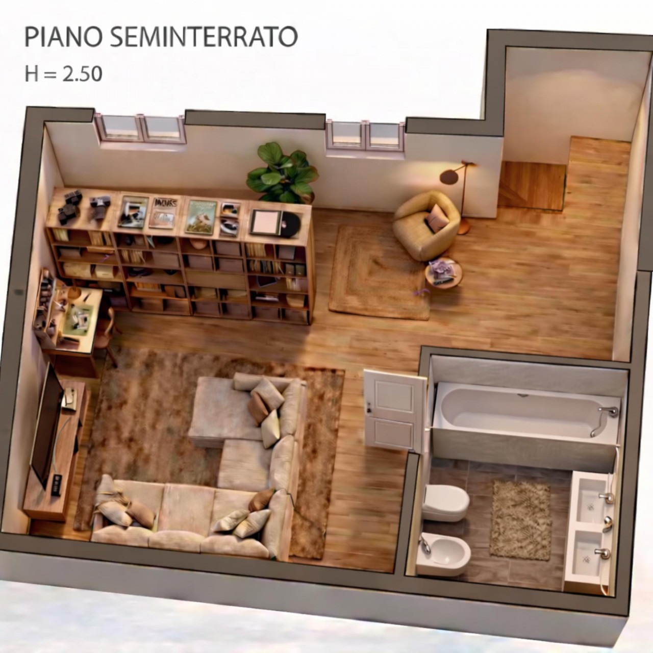 L’abitazione accoglie con una piacevole zona giorno con soggiorno e cucina a vista ben attrezzata, uno spazio caldo e conviviale. La zona notte, ben separata da un pratico e spazioso disimpegno, ospita due ampie camere matrimoniali e un bagno comodo, offrendo ambienti ampi e ben distribuiti, sempre più difficili da trovare. A rendere questa proposta davvero distintiva è l’ampio spazio al piano seminterrato, collegato internamente all’abitazione e completo di elegante bagno dotato di vasca idromassaggio: un ambiente prezioso, da vivere e reinterpretare secondo le proprie esigenze, ideale come zona relax, studio, palestra o spazio multifunzionale.