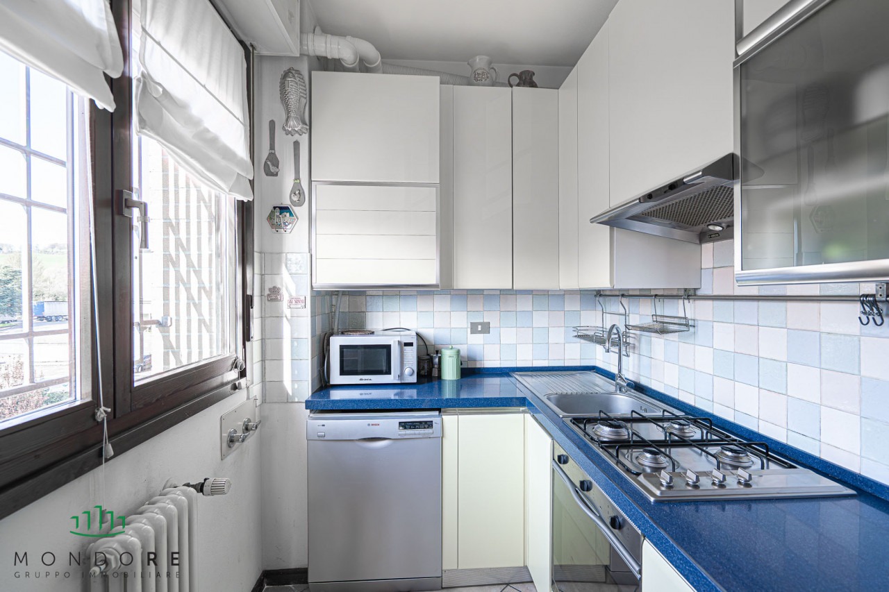Con una superficie totale di 84 mq, l’immobile si compone di un luminoso ingresso che conduce ad un ampio soggiorno perfetto per momenti conviviali e rilassanti con cucinotto separato e funzionale. L’appartamento offre due spaziose camere da letto ideali per famiglie o come studio professionale. Completano la proprietà due bagni moderni e ben rifiniti, oltre a due logge dove poter godere del sole e dell’aria fresca, e 1 cantina.