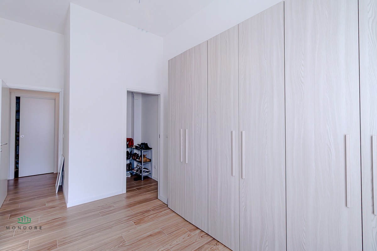 Composizione: Ampia zona giorno di circa 40 mq con cucina a vista, Due camere matrimoniali, entrambe con cabina armadio, Due bagni (uno finestrato + uno con antibagno), Ripostiglio lavanderia di generose dimensioni.