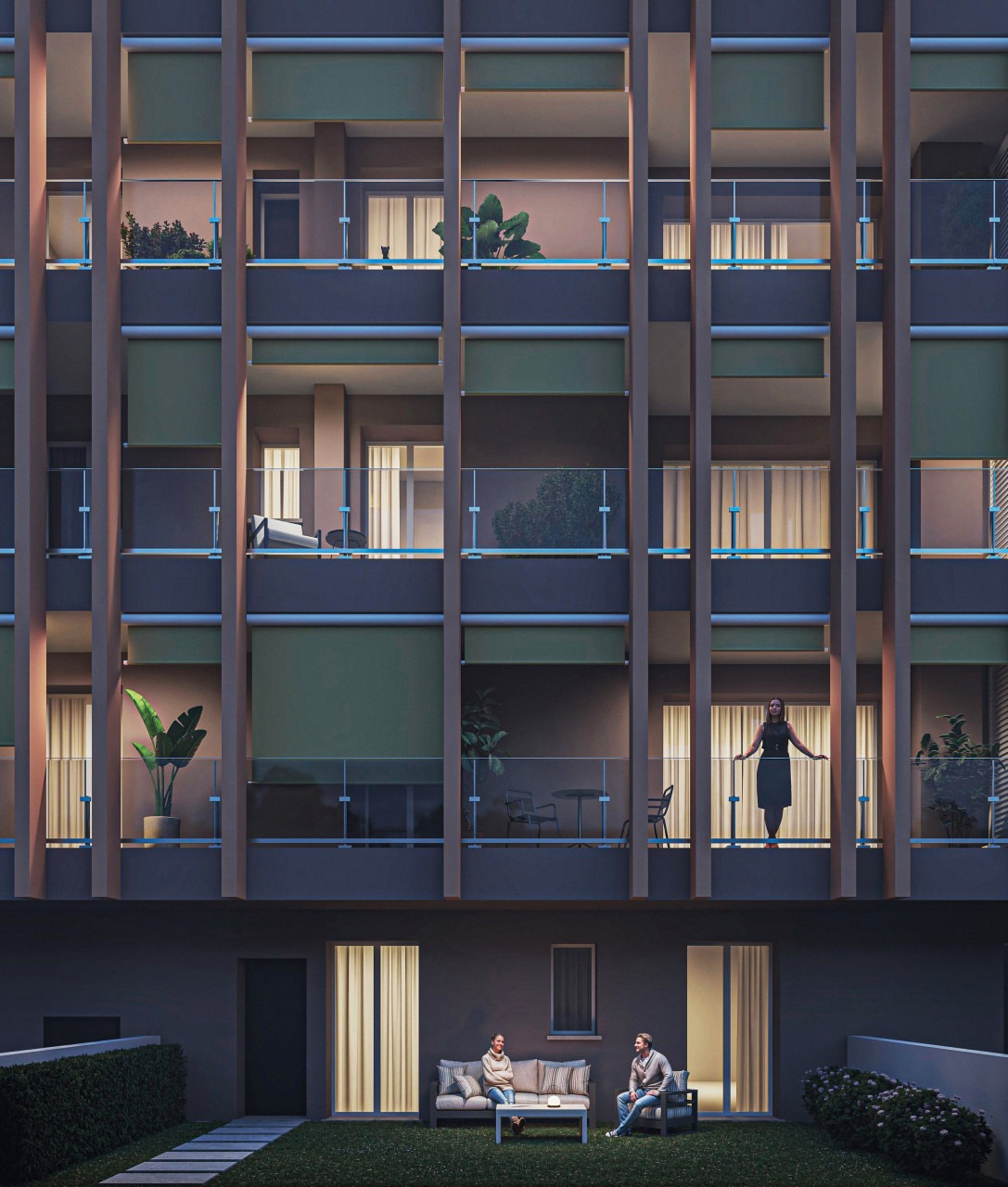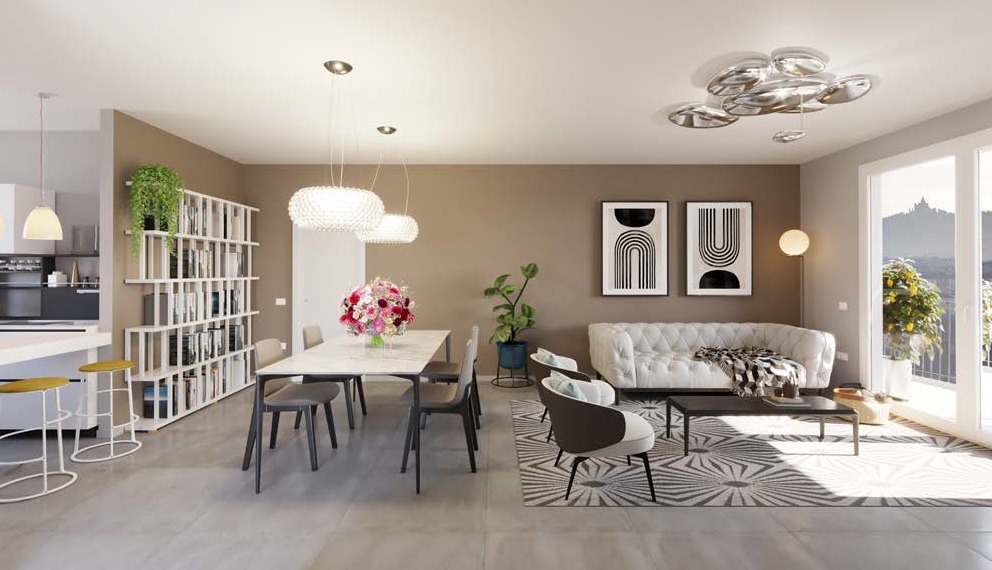 I soggiorni sono confortevoli con ampie vetrate che aprono direttamente sulle terrazze abitabili. Le cucine possono essere aperte verso il soggiorno, per chi desidera uno stile più moderno e conviviale, oppure progettate come ambienti con elementi scorrevoli a schermatura. La zona notte è caratterizzata da comode e confortevoli camere letto. I bagni posso prevedere anche due lavabi e le docce sono profonde e comode studiate con accesso walk-in. I grandi infissi del soggiorno garantiscono piena continuità tra interno ed esterno e grande luminosità alla zona living. L’esposizione delle terrazze verso il tramonto e la vista di San Luca rendono gli attici unici. Tutti gli attici hanno ampie terrazze vivibili ed arredabili, è prevista anche una zona BBQ e lavello esterno.