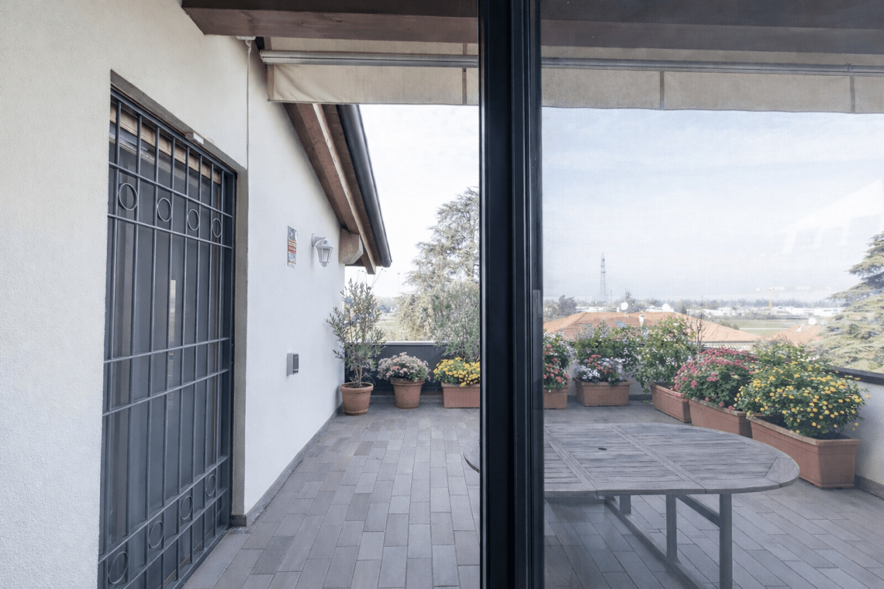 Punto di forza della proprietà è la terrazza di 50 mq che circonda l’appartamento, ideale per momenti di relax, cene all’aperto e per godere del verde circostante.