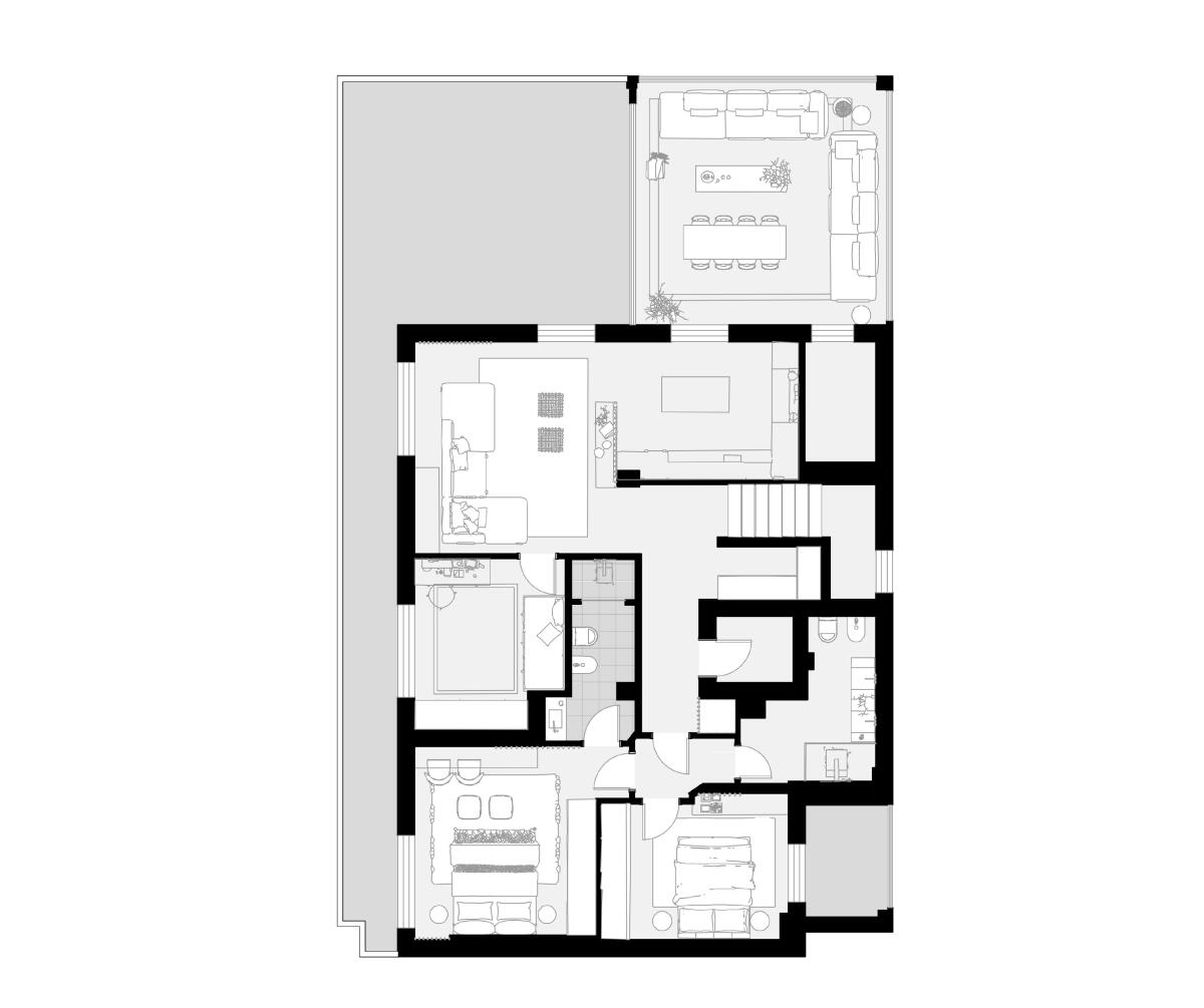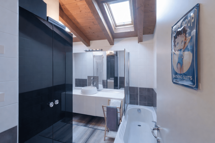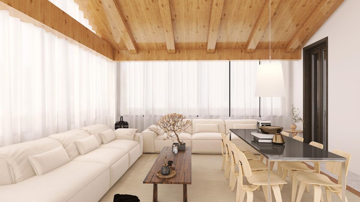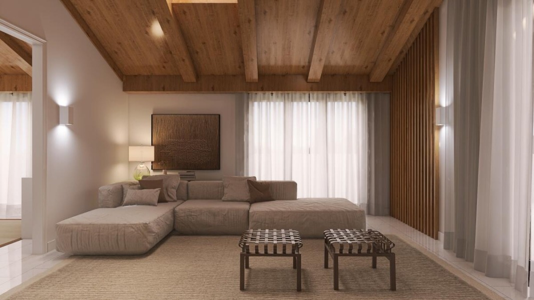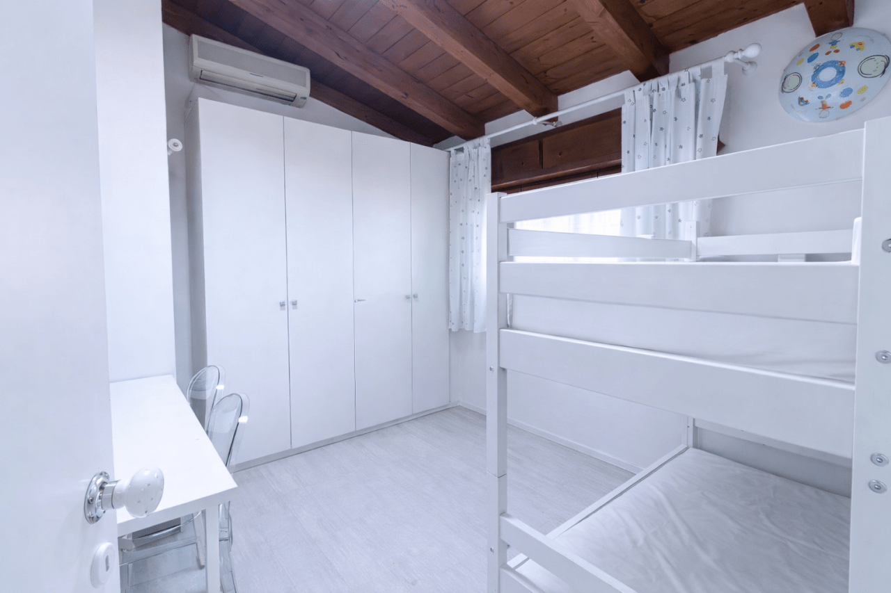 L’ingresso accoglie in un ambiente caldo e curato, con finiture ricercate, travi in legno a vista e spazi luminosi. Il soggiorno con cucina open space si apre su una splendida veranda di 30 mq, vivibile tutto l’anno. La zona notte comprende tre camere da letto: la padronale con bagno en suite, una seconda camera con terrazzino loggiato e una terza stanza. Completano il reparto notte un secondo bagno finestrato e una comoda lavanderia.