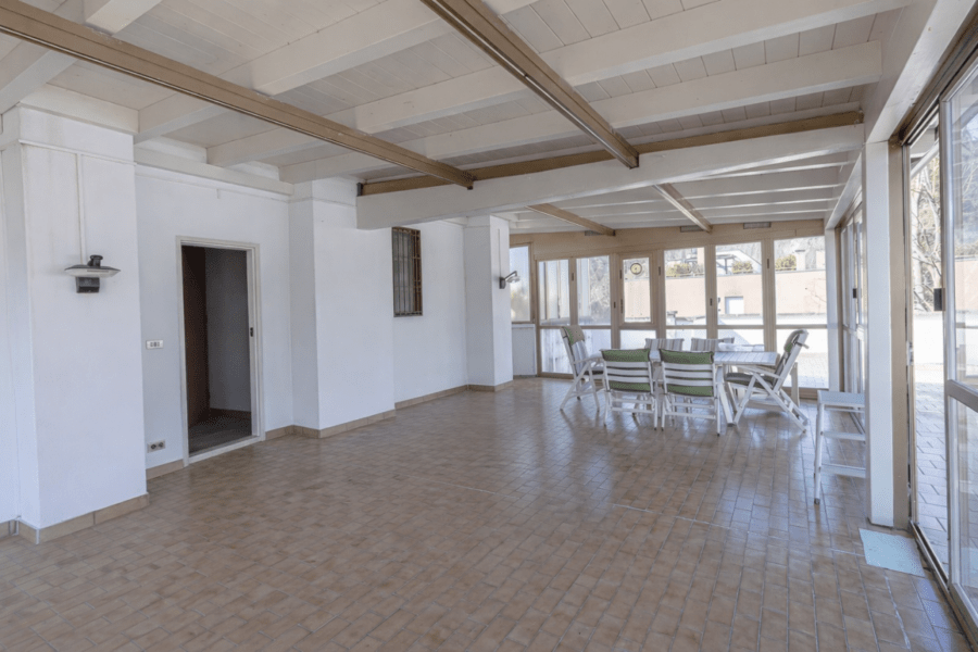 una meravigliosa veranda di 36 mq, completamente ristrutturata nel 2017, con comodo ripostiglio e circondata da una spettacolare terrazza panoramica di 103 mq che abbraccia l’intera abitazione – uno spazio unico, perfetto per vivere l’esterno in totale privacy.