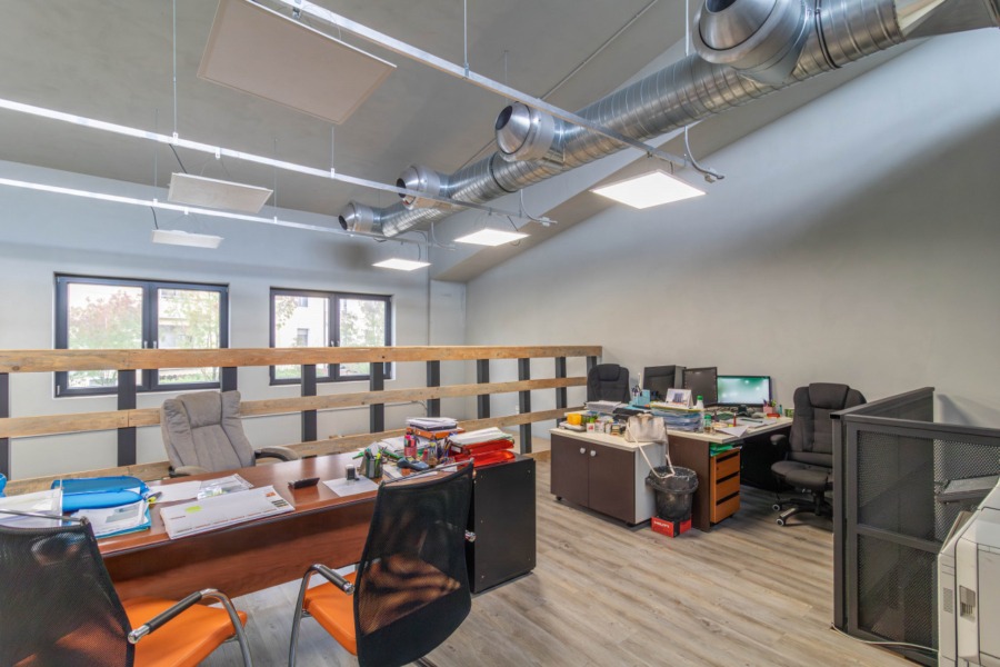 In aggiunta, troverete bagni eleganti e raffinati nella zona ufficiale; gli infissi in alluminio doppio vetro garantiscono isolamento termico ed acustico. Il sistema di riscaldamento e raffrescamento elettrico assicura comfort durante tutto l’anno mentre il pavimento in gres effetto legno (120 cm x 60 cm) conferisce un tocco sofisticato agli ambienti lavorativi.