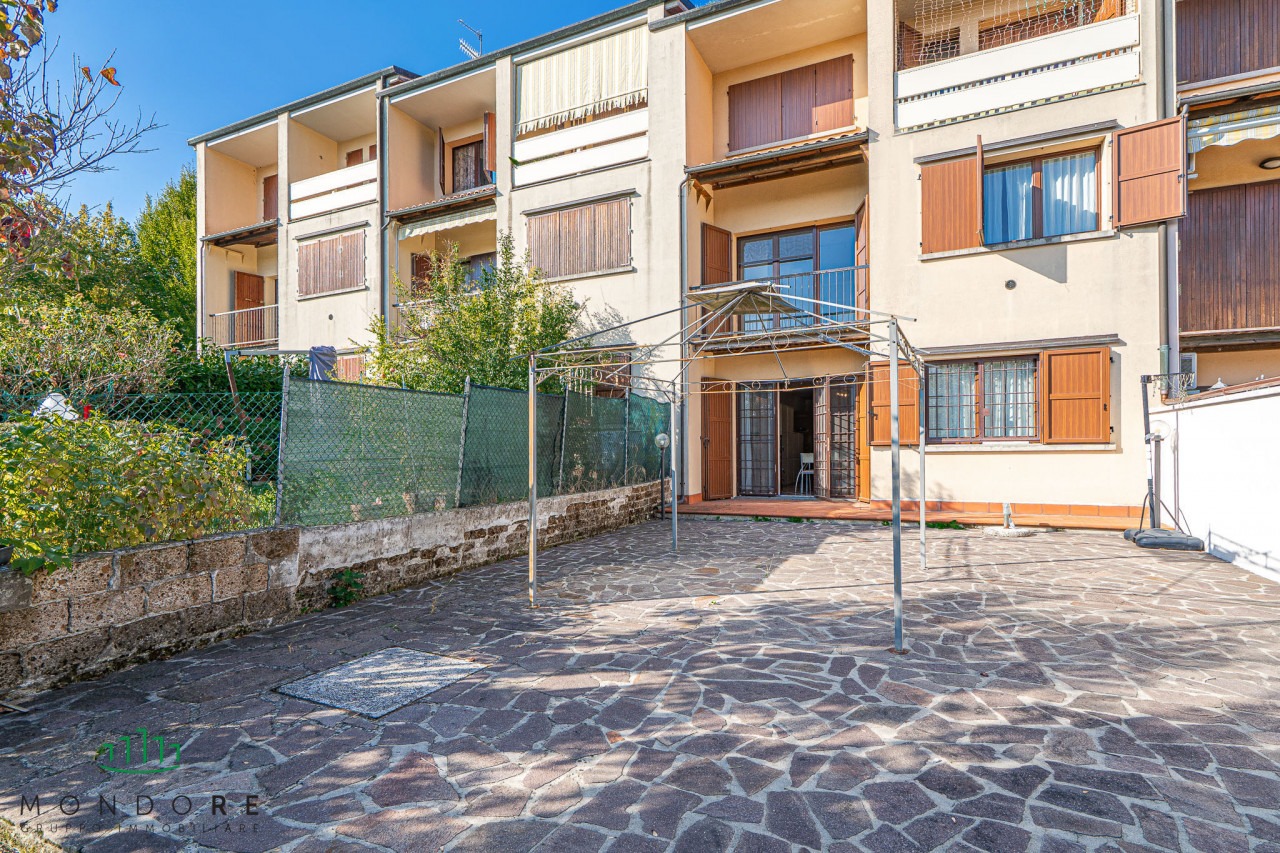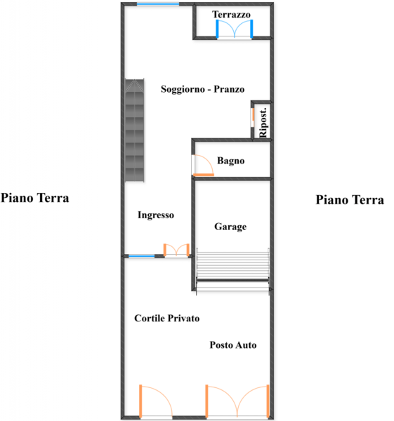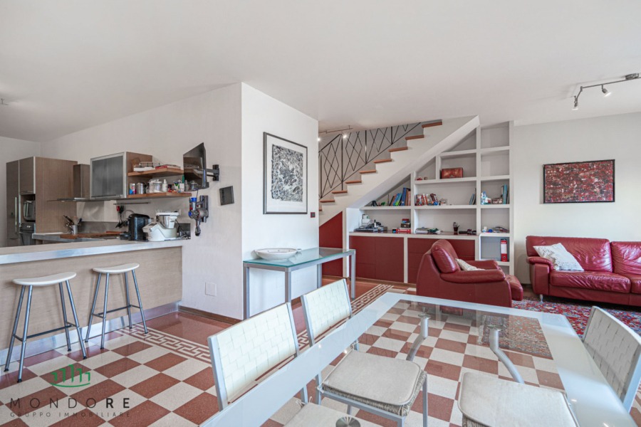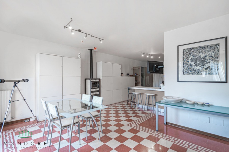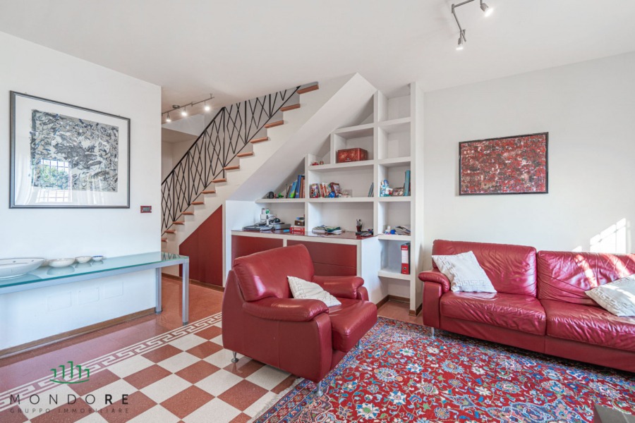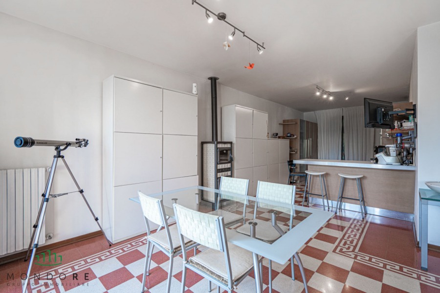 Attraverso il cortile privato si accede direttamente all’abitazione, entrando in un ampio e luminoso soggiorno grazie all’affaccio sul terrazzo di pertinenza; al piano un comodo bagno di servizio e un pratico ripostiglio.