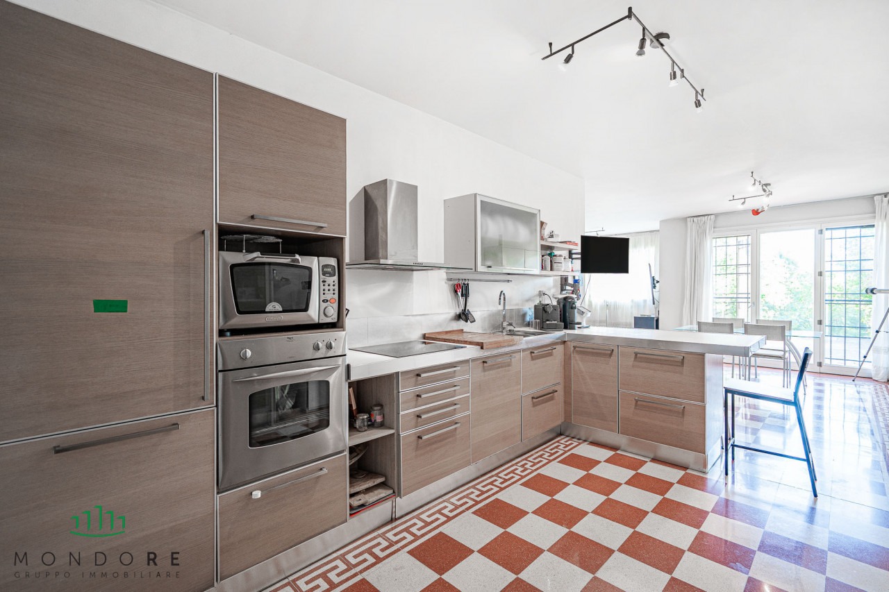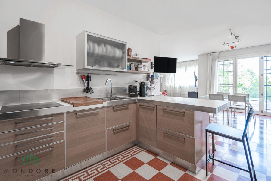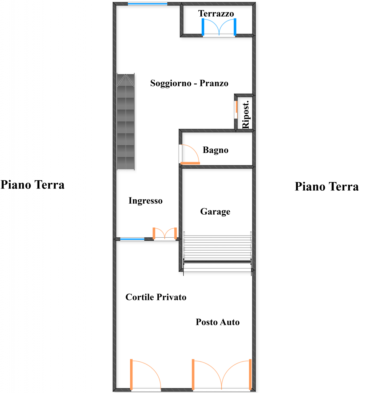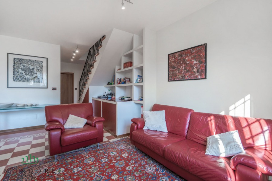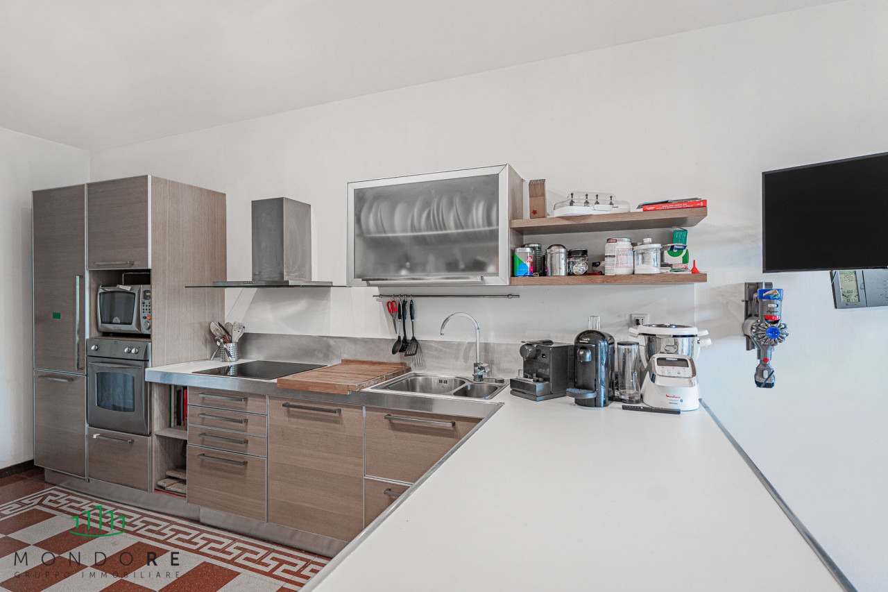 Attraverso il cortile privato si accede direttamente all’abitazione, entrando in un ampio e luminoso soggiorno grazie all’affaccio sul terrazzo di pertinenza; al piano un comodo bagno di servizio e un pratico ripostiglio.