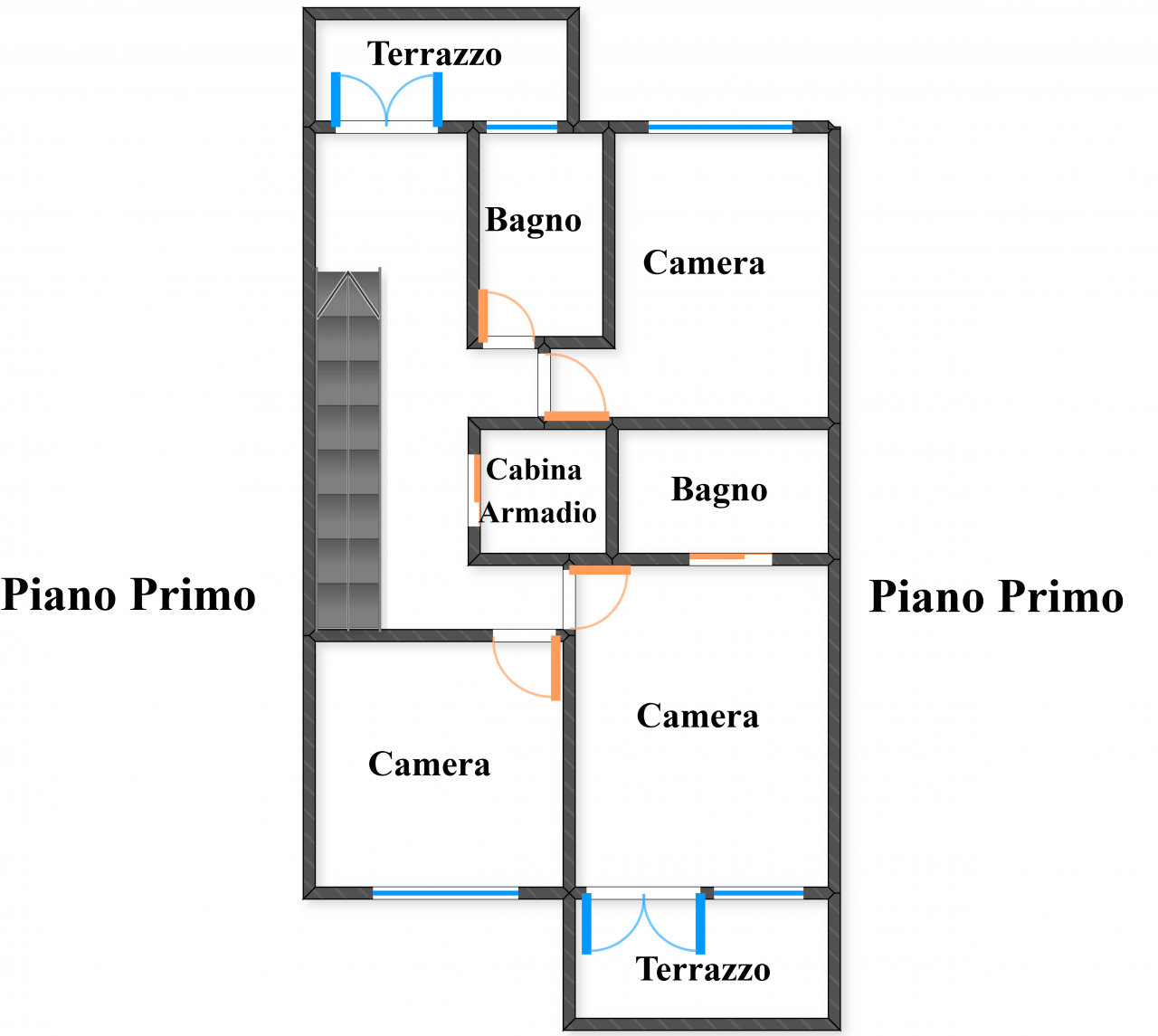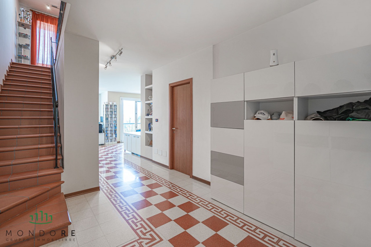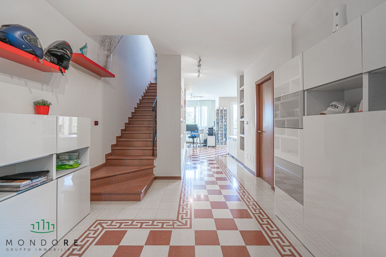 Al primo piano si sviluppa la zona notte, composta da un bagno finestrato, una cabina armadio, un terrazzo, tre camere da letto, di cui una con bagno e terrazzo privato.