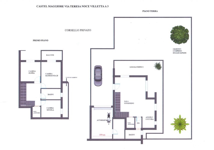 al primo piano, collegato da una moderna scala, disimpegno, tre comode camere, un bagno e terrazzo con balaustre in vetro. Le 4 unità godono di ingresso indipendente carrabile con cancello e box di circa 20 mq, entrambi automatizzati, dalla quale si accede alla zona living attraverso il vano tecnico passando per la lavanderia.
