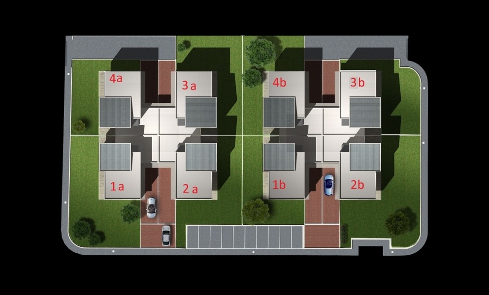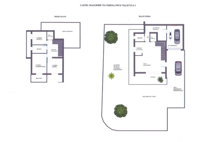 al primo piano, collegato da una moderna scala, disimpegno, tre comode camere, un bagno e terrazzo con balaustre in vetro. Le 4 unità godono di ingresso indipendente carrabile con cancello e box di circa 20 mq, entrambi automatizzati, dalla quale si accede alla zona living attraverso il vano tecnico passando per la lavanderia.