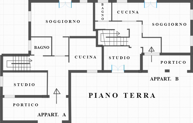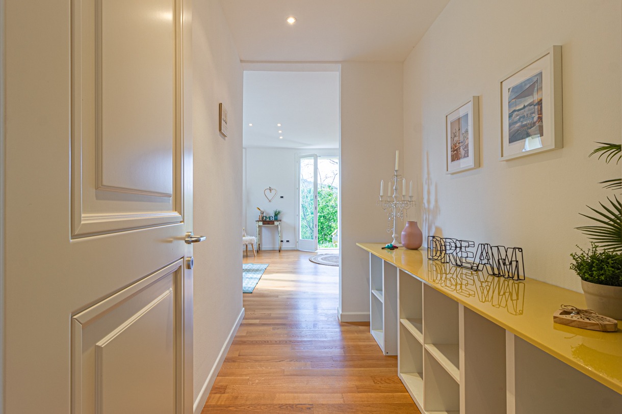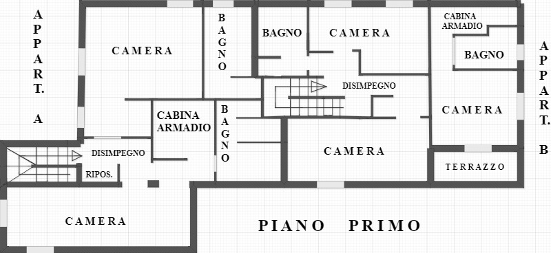 Appartamento A: mq 278 c.a. già abitabile. Piano terra: ingresso arredabile e studio, ampio e luminoso soggiorno con camino d’epoca con porta finestra ed accesso al giardino, cucina abitabile con porta finestra che affaccia sulla corte, bagno con doccia. Una elegante scala con parquet porta al primo piano con 2 camere matrimoniali entrambe con bagno riservato con vasca e doccia, ripostiglio e cabina armadio. Nel seminterrato grande locale riscaldato di 80 mq circa multiuso (hobby/tavernetta/garage) dotato di serranda automatica.