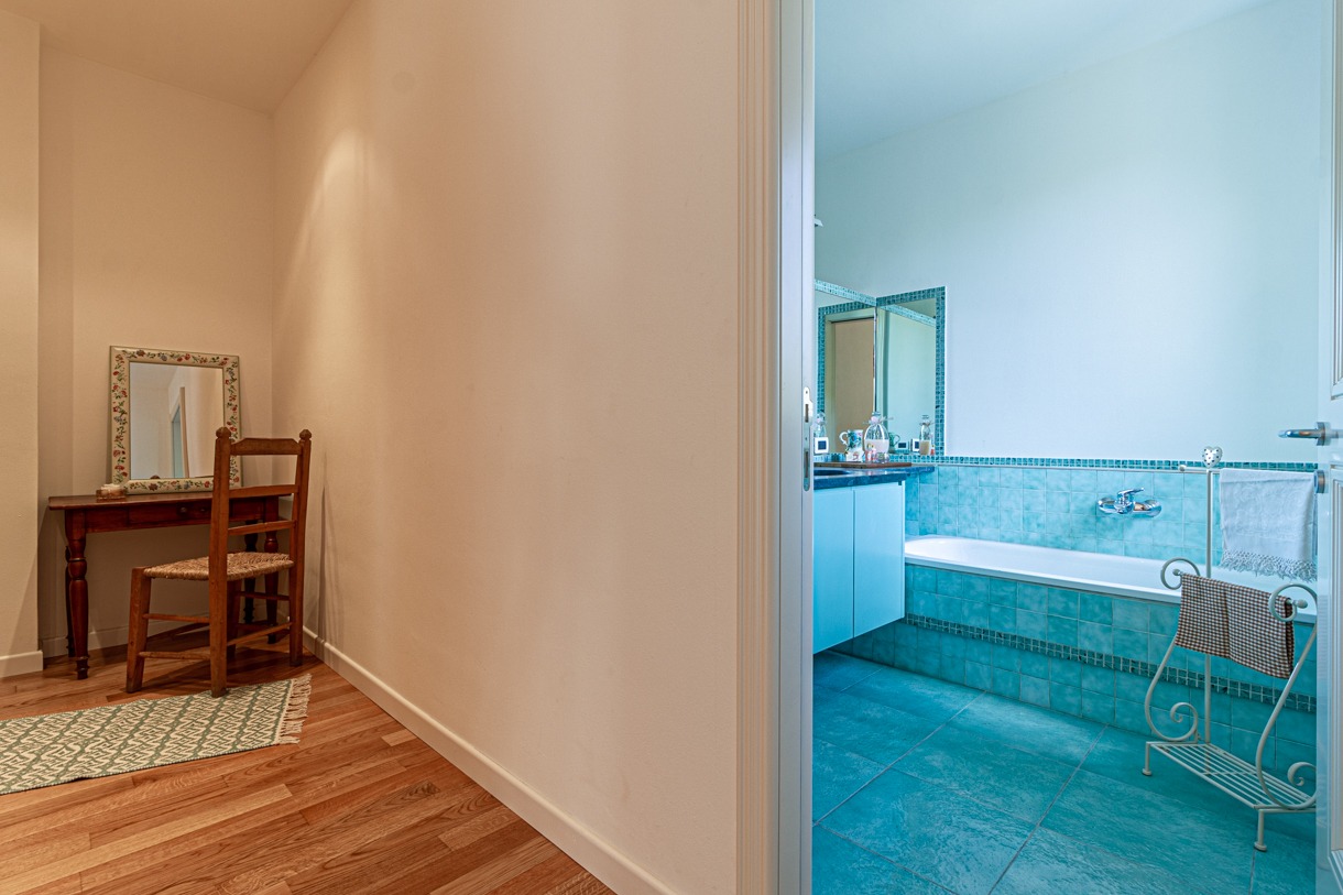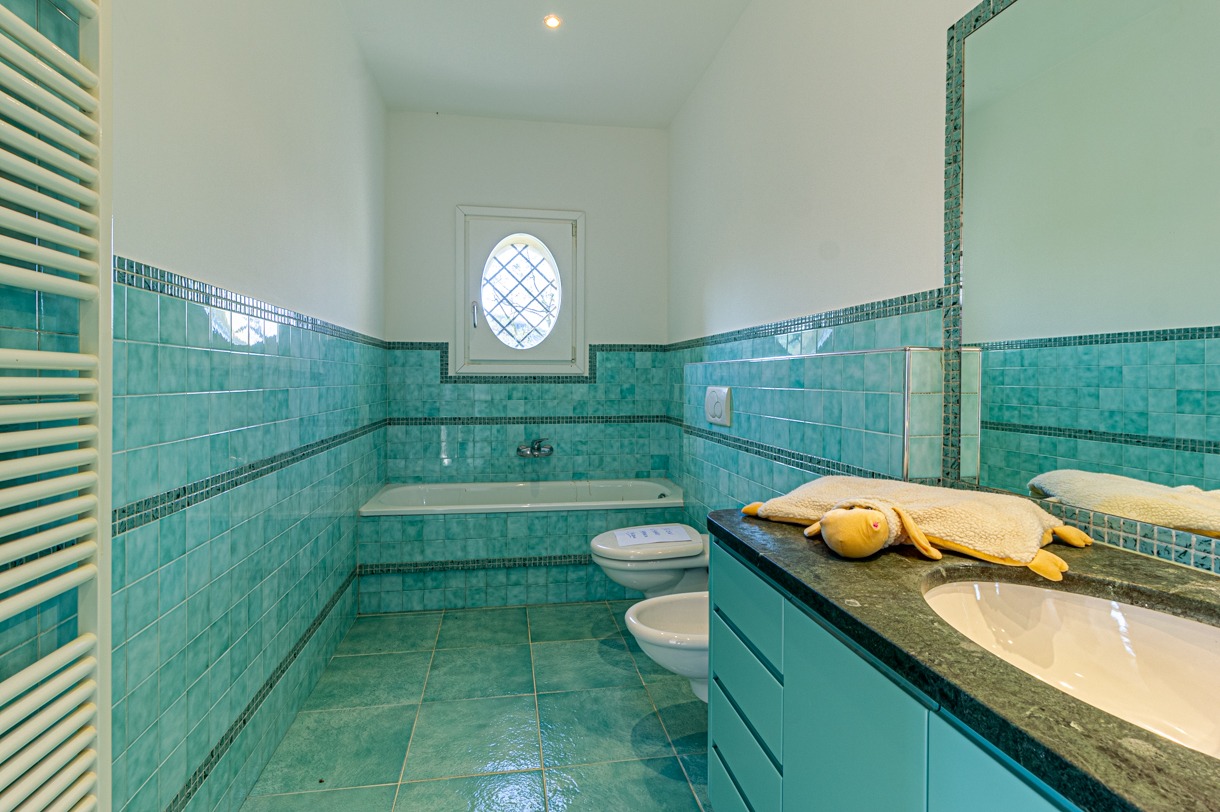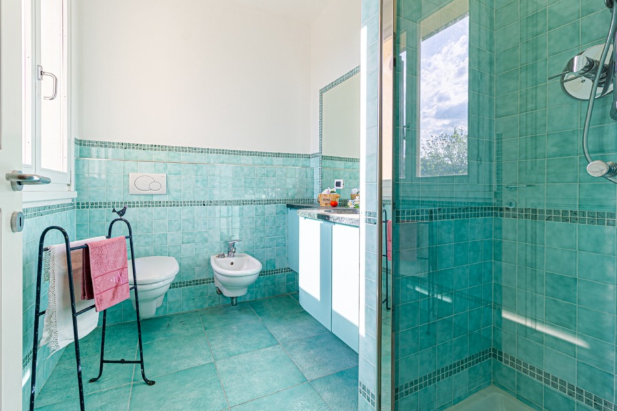 Appartamento B: 250 mq c.a. da completare con: pavimenti dei vani e delle scale, piastrelle bagni e porte interne. I sanitari di pregio ed accessori dei 4 bagni sono già presenti. Lo sviluppo, piano terra: ingresso, studio, luminoso soggiorno open con camino d’epoca, cucina a vista e bagno. Primo piano: 3 camere da letto, due matrimoniali di cui una con bagno riservato, secondo bagno e cabina armadio. Da una comoda scala si accede al sottotetto con velux e straordinarie travi a vista fornite da una impresa specializzata del Trentino. Sempre nel sottotetto troviamo due serbatoi (uno per ogni appartamento) con autoclave per ottimizzare la pressione dell’acqua ai servizi. Seminterrato: locale caldaia e bagno, a completare il tutto garage riscaldato di 45 mq c.a. con serranda automatica. Le finiture di entrambi gli appartamenti sono di pregio con infissi doppio vetro, porte in legno artigianali, sanitari sospesi e box doccia eleganti. Lo scannafosso,circonda la villa e la mantiene indenne dall’umidità. Antenna satellitare,