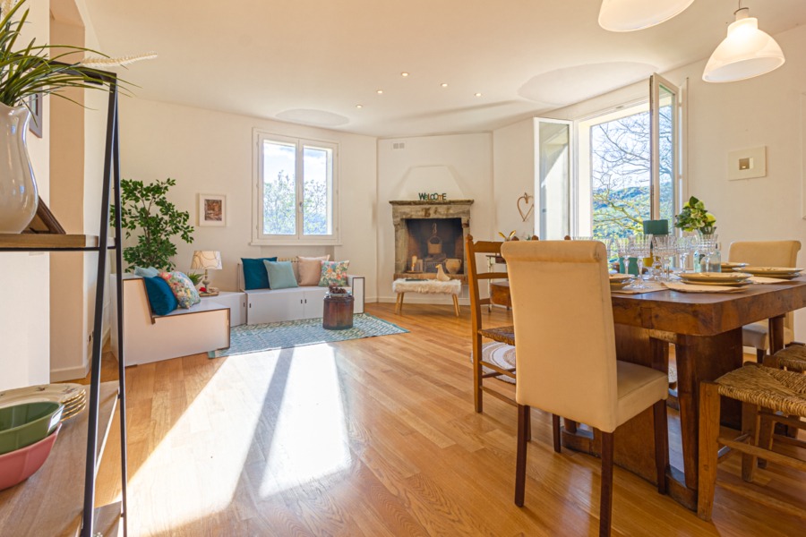 Certificazione Strutturale, Relazione Tecnica Integrata e Certificazione Energetica già disponibili. La villa, è fornita in rete di acqua potabile, metano e linea telefonica. L’immobile è sito in Via Val Quaderna 761/A (già Via San Giorgio) ; superato il bivio di Palesio di 2 km è ben indicato sulla sinistra l’accesso a strada privata. E’ una breve vicinale sterrata di 250 m ca. condivisa con un’altra villa che, superato il torrente Quaderna, attraverso il cancello privato e tratto asfaltato, si raggiunge la proprietà. Libera al rogito. Classe energetica F. Richiesta € 695.000 + terreni 115.000 €