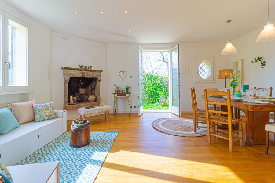 riscaldamento a metano di città, pozzo per raccolta acqua piovana del tetto e dell’ampia corte molto curata e pavimentata con sassi di fiume. I terreni dell’intero podere, per la maggior parte seminativi e pascolo, sono ben curati in agreement con un agricoltore in zona. La Villa si presta egregiamente a soluzione genitori/figli e/o coabitazione.